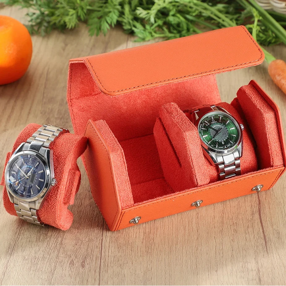Saffiano Genuine Leather Watch Roll Storage Case Travel Organizer
